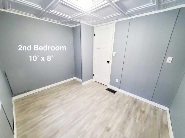 The master bedroom is filled with natural light from the large window overlooking the open field and hill across the road. The large built-in closet fits seamlessly into the space. The smaller bedroom is big enough to use as a hobby room, guest room, or a gigantic walk-in closet, if desired.