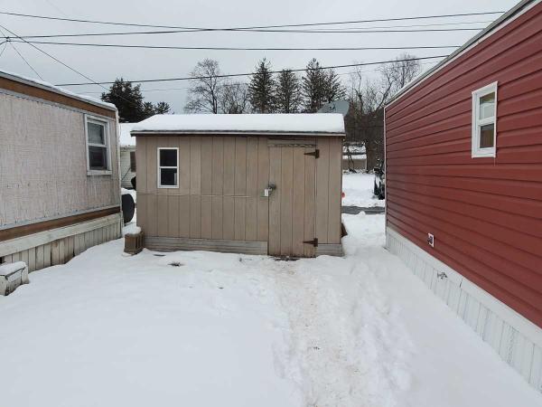 A 5x8 wooden shed is included on the lot and has built-in shelving, a workbench, and cabinets for any hobbyist.